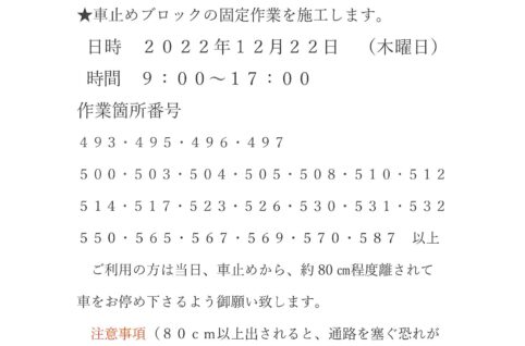 自走式駐車場(屋上)の車止めブロック固定作業