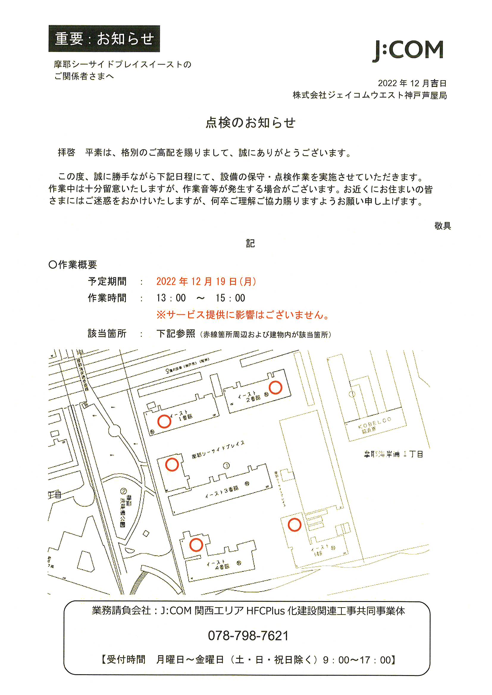 J:COM 点検のお知らせ