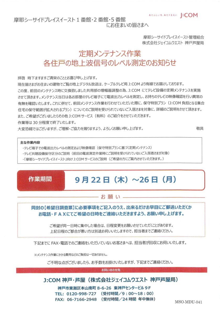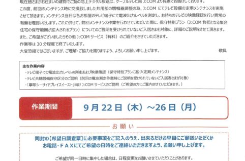 ①②⑤番館J:COM定期メンテナンス作業