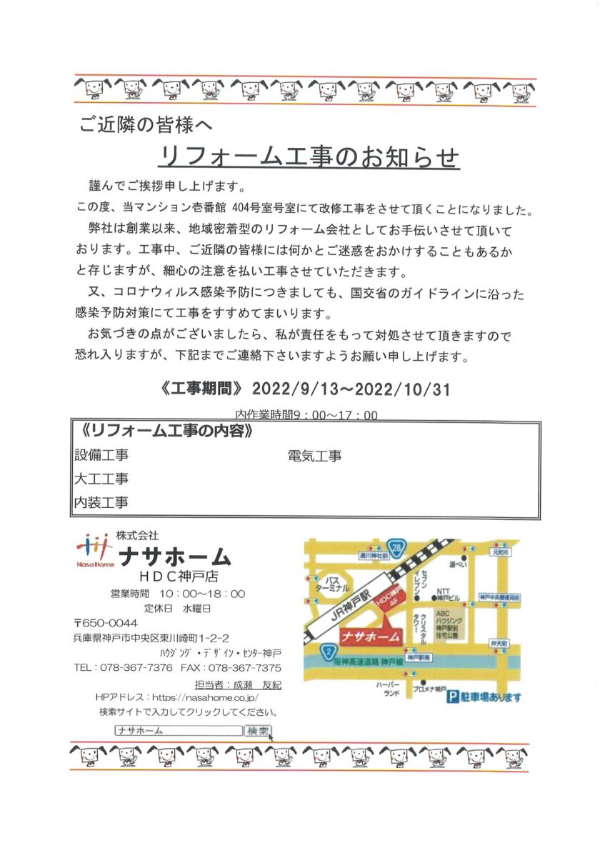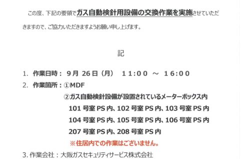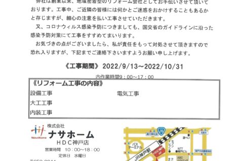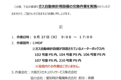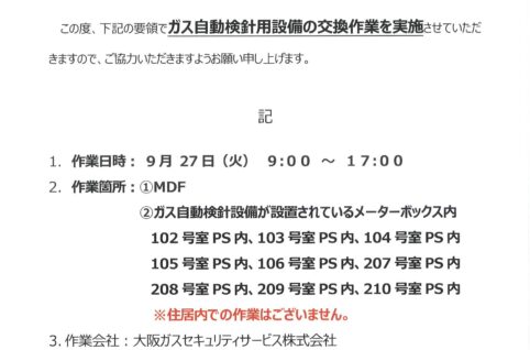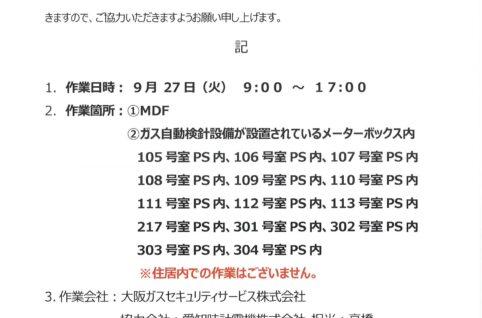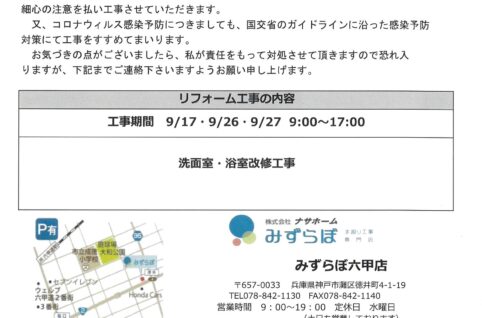 [1番館]リフォーム工事のお知らせ