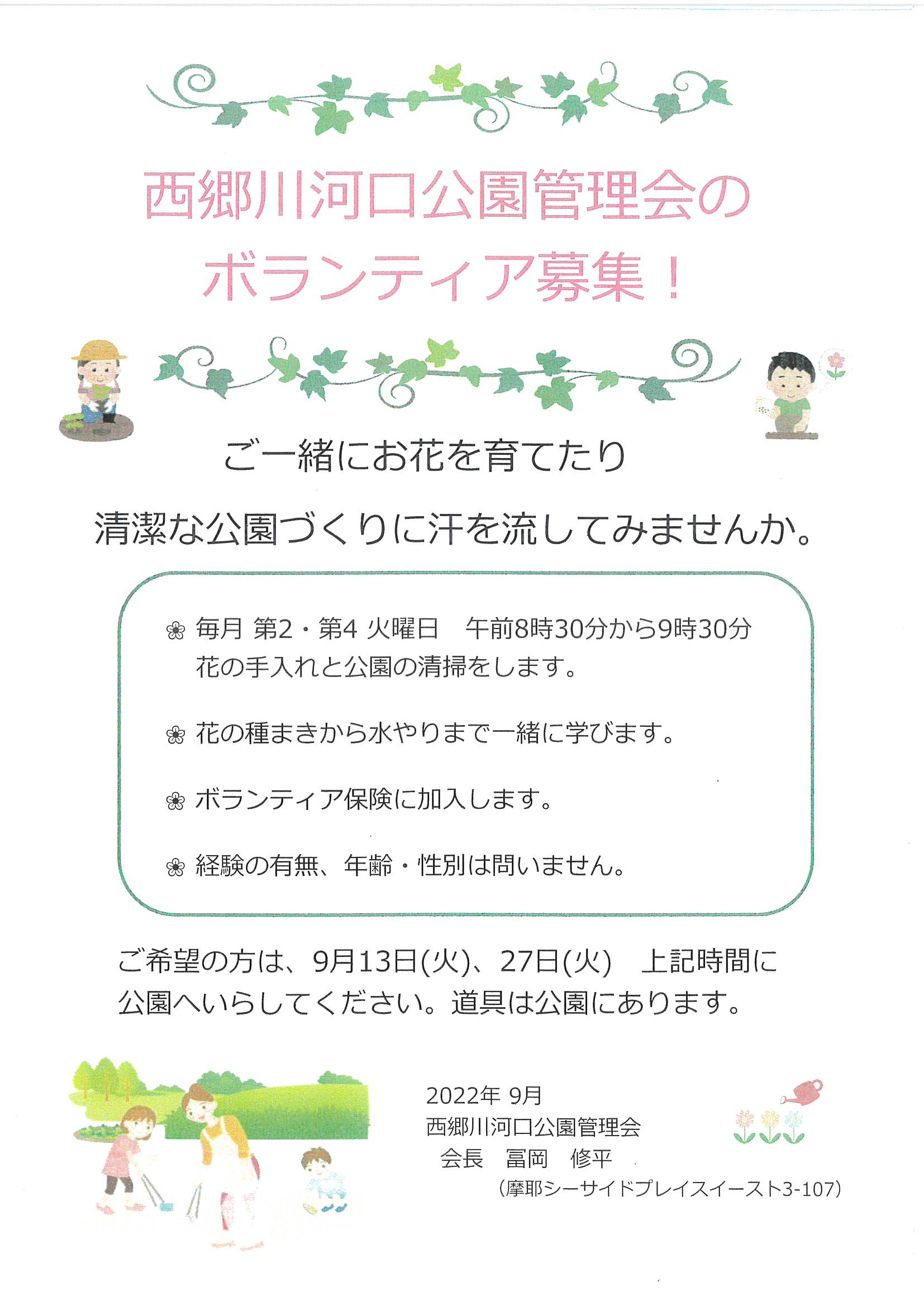 西郷川河口公園管理会のボランティア募集