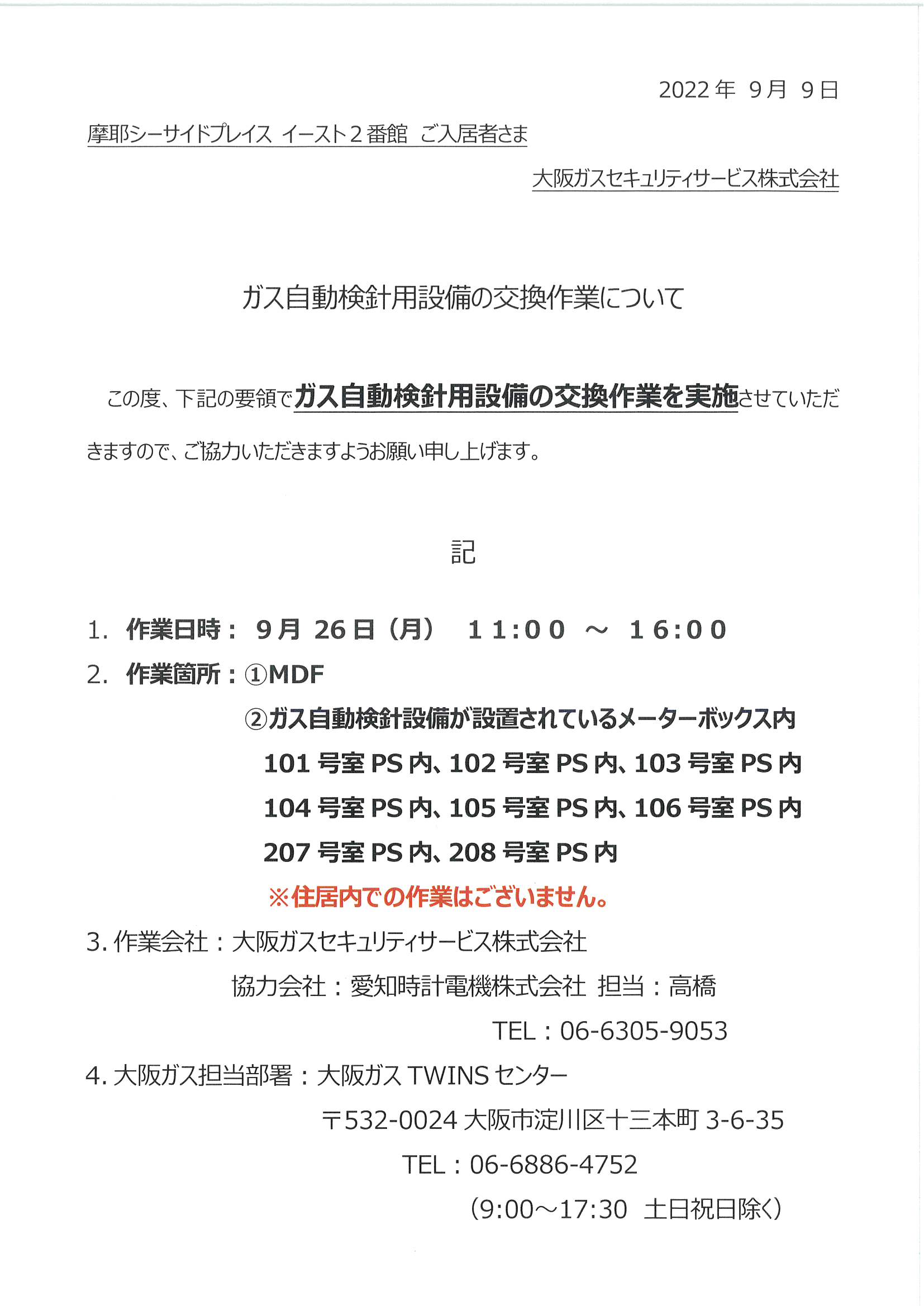 9月26日①番館ガス自動検針設備の交換作業