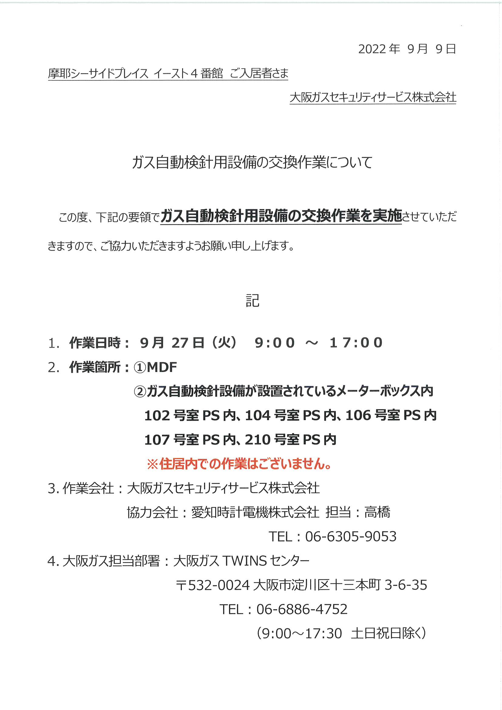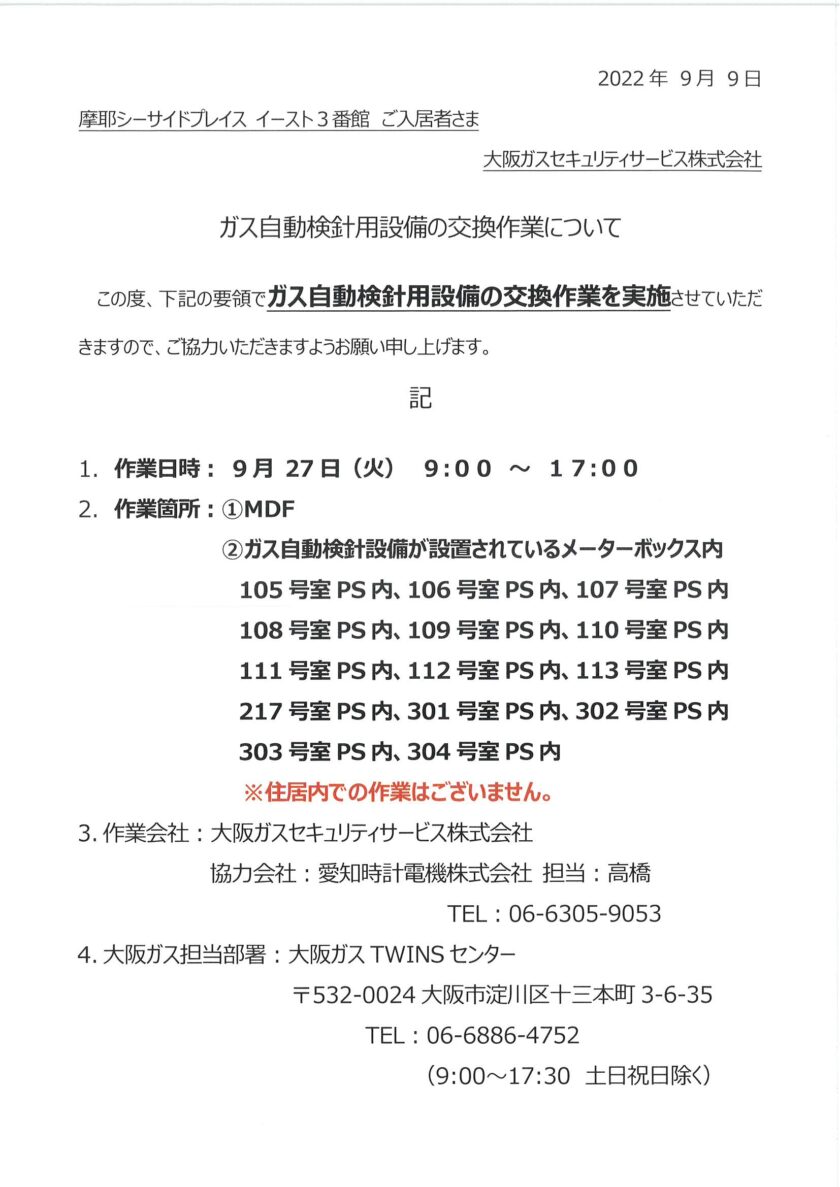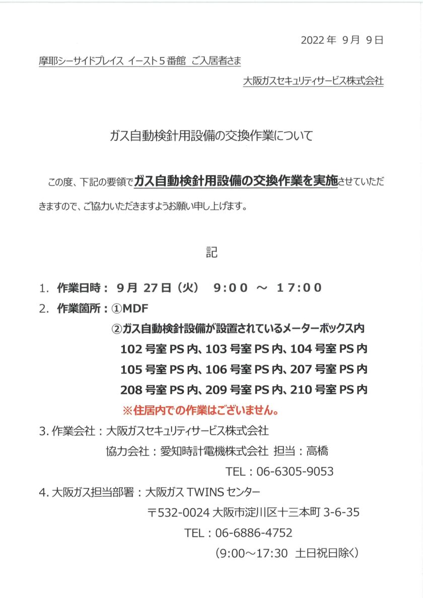 9月27日⑤番館ガス自動検針設備の交換作業