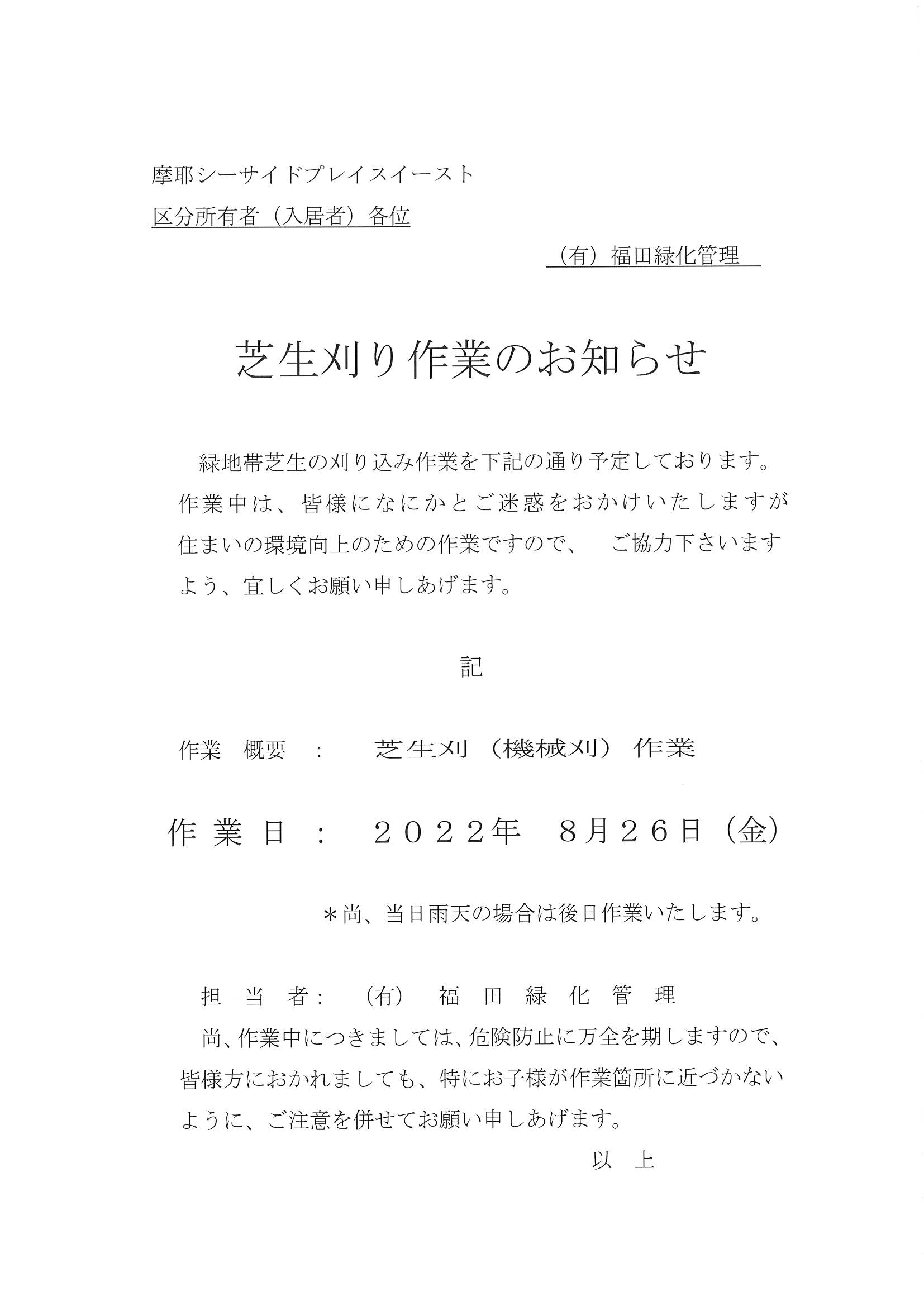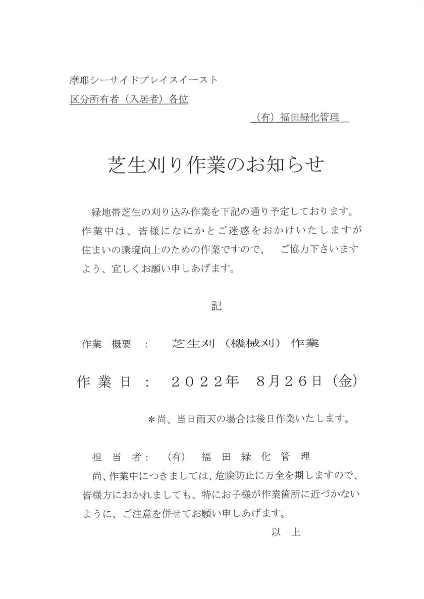 芝刈り作業のお知らせ