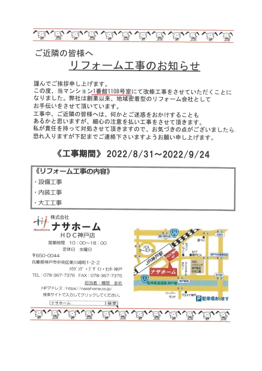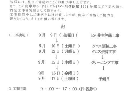 [1番館]リフォーム工事のお知らせ