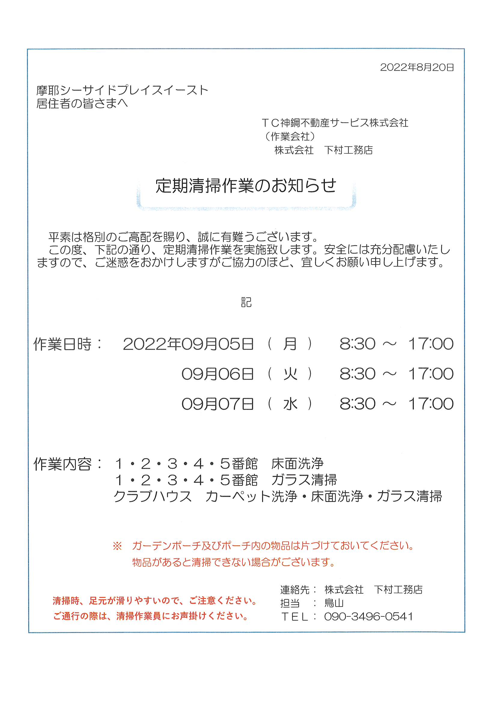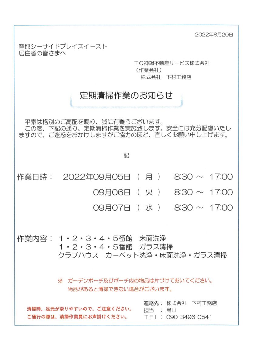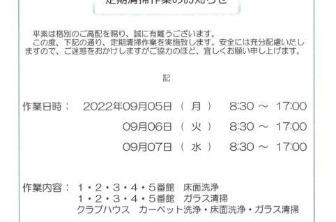 定期清掃作業のお知らせ