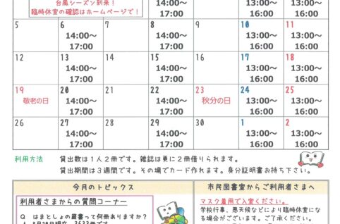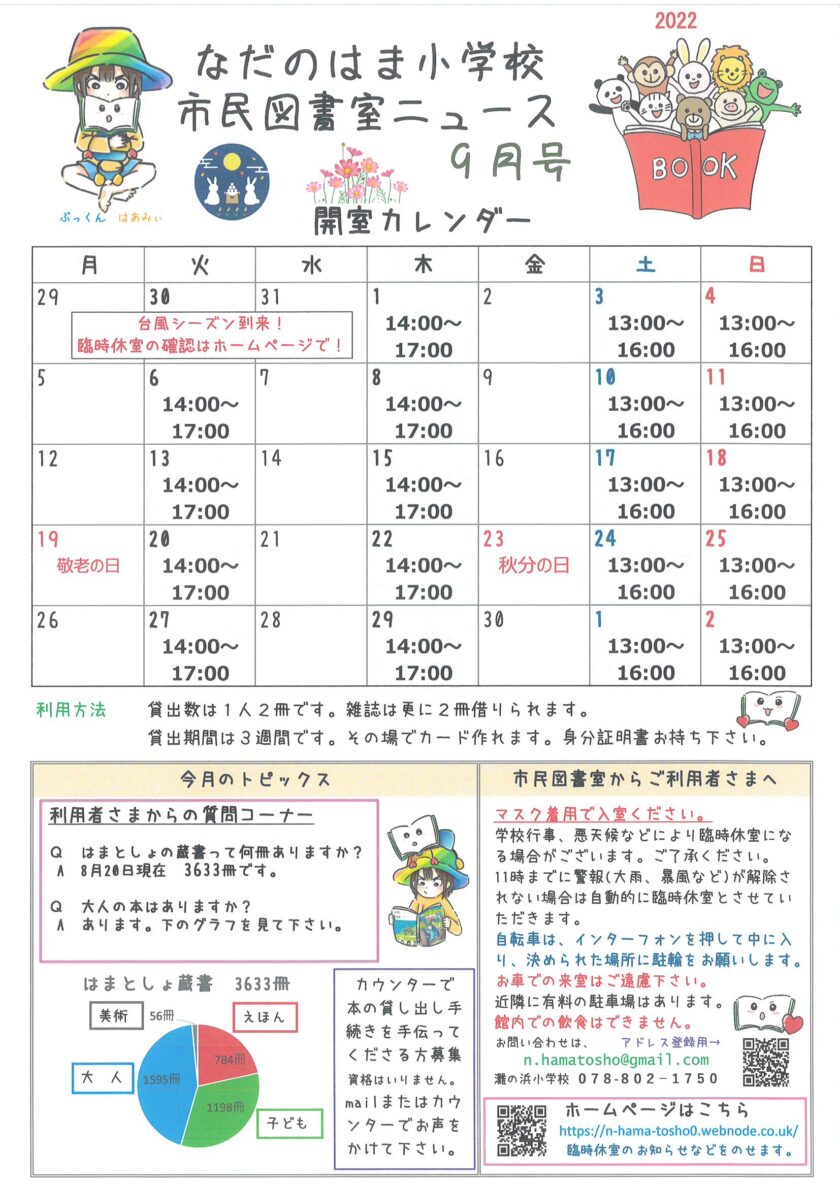 9月号なだのはま小学校市民図書室ニュース