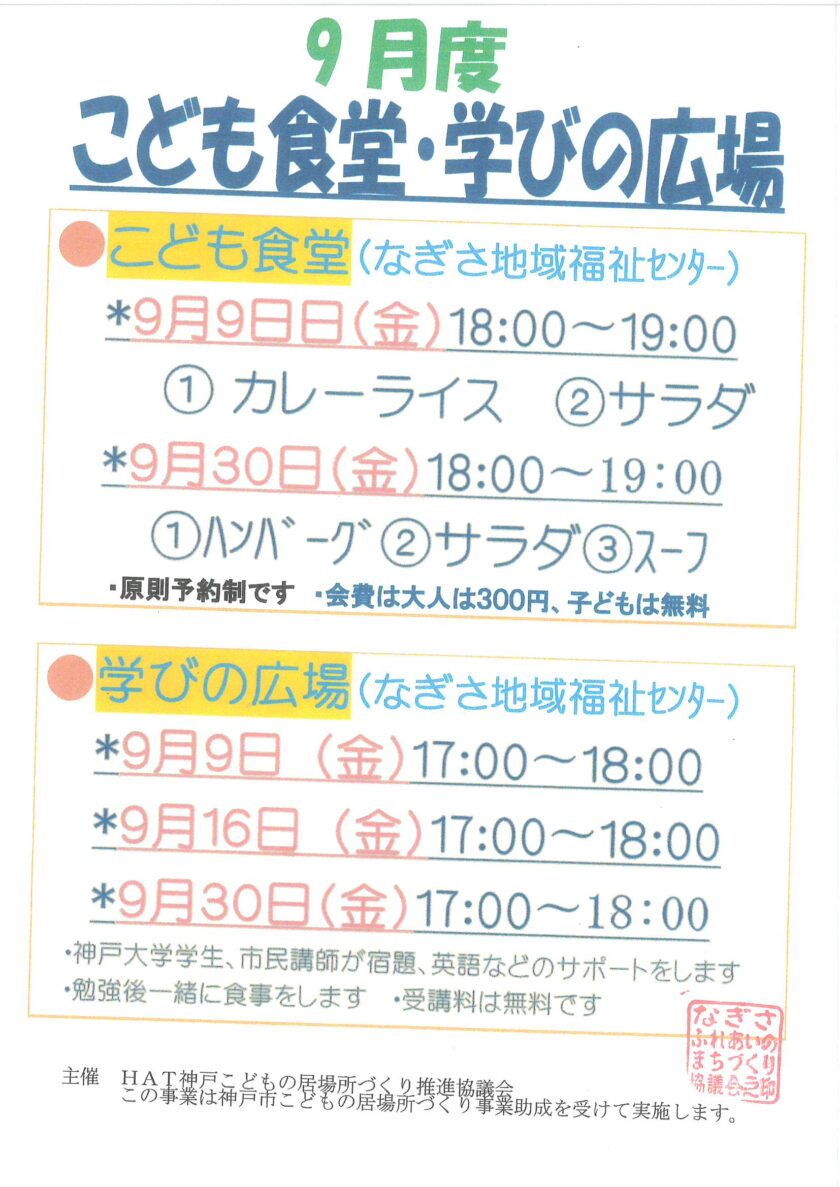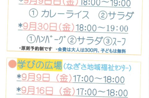 9月度こども食堂・学びの広場