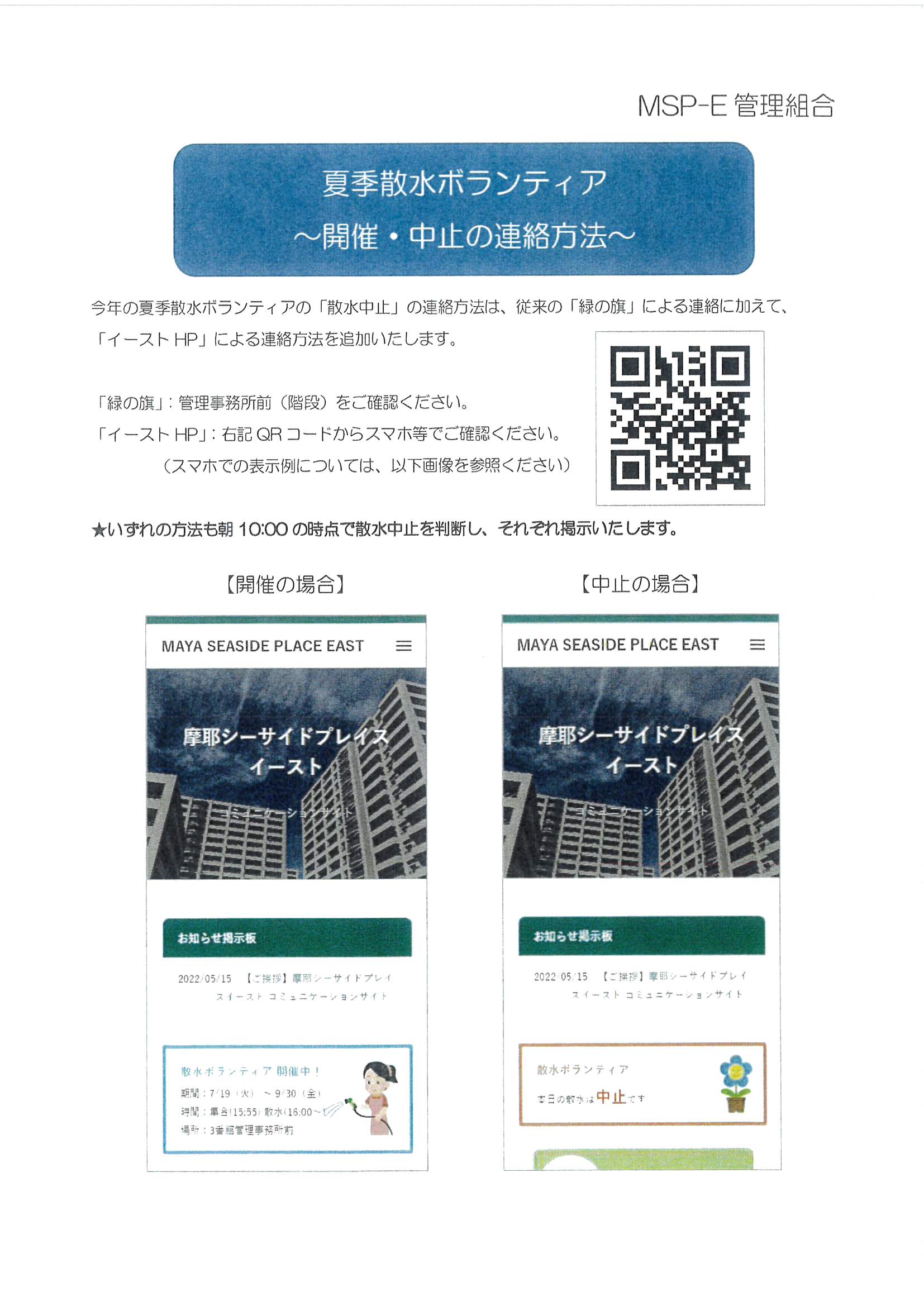夏季散水ボランティア 開催・中止の連絡方法