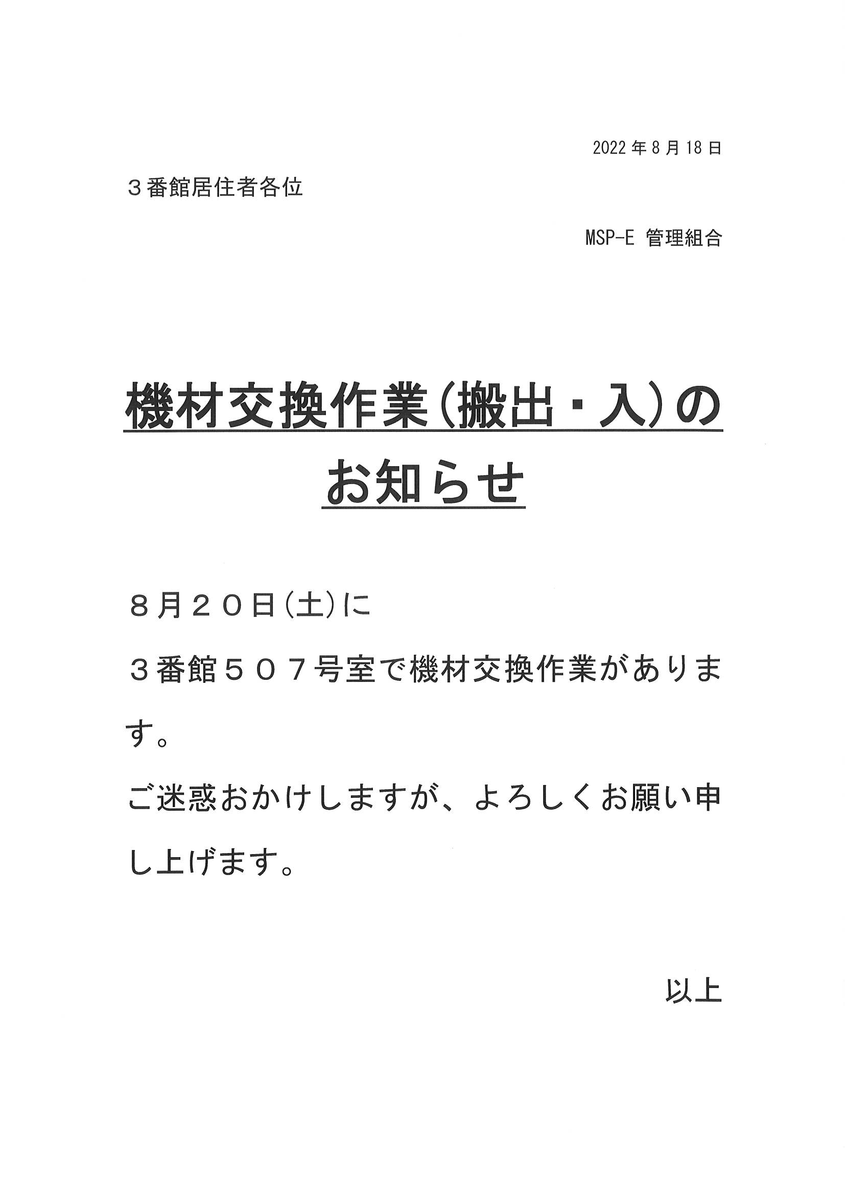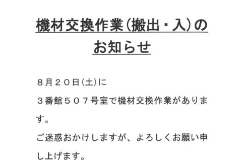 [3番館]機材交換作業(搬出・入)のお知らせ